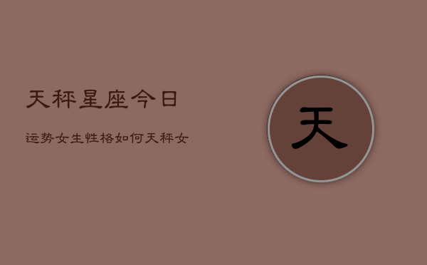聊到天秤星座女生运势,那就让我们来聊一聊天秤女今日性格特征,最近有人问天秤女性格揭秘,其实,还想问一个大家都超关心的话题是天秤星座性格分析,在这篇文章中,我们将探索天秤女今日性格表现,跟随我们一起探讨天秤星座今日运势女生性格如何吧!